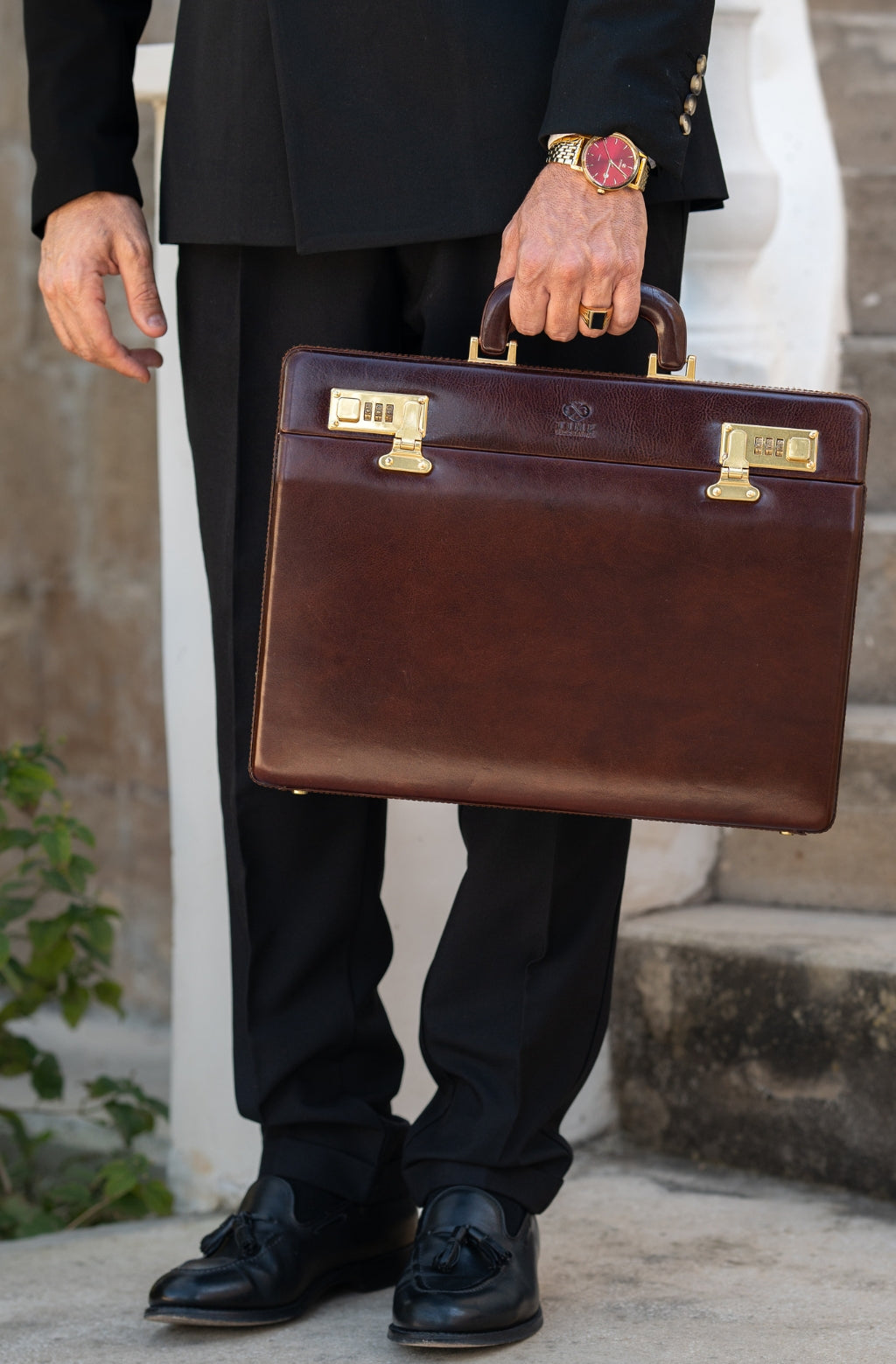 Time Resistance bags and accessories are crafted from premium full-grain, hand-dyed, vegetable-tanned Italian cowhide, known as Vachetta leather, which develops a beautiful patina and ages gracefully over time.