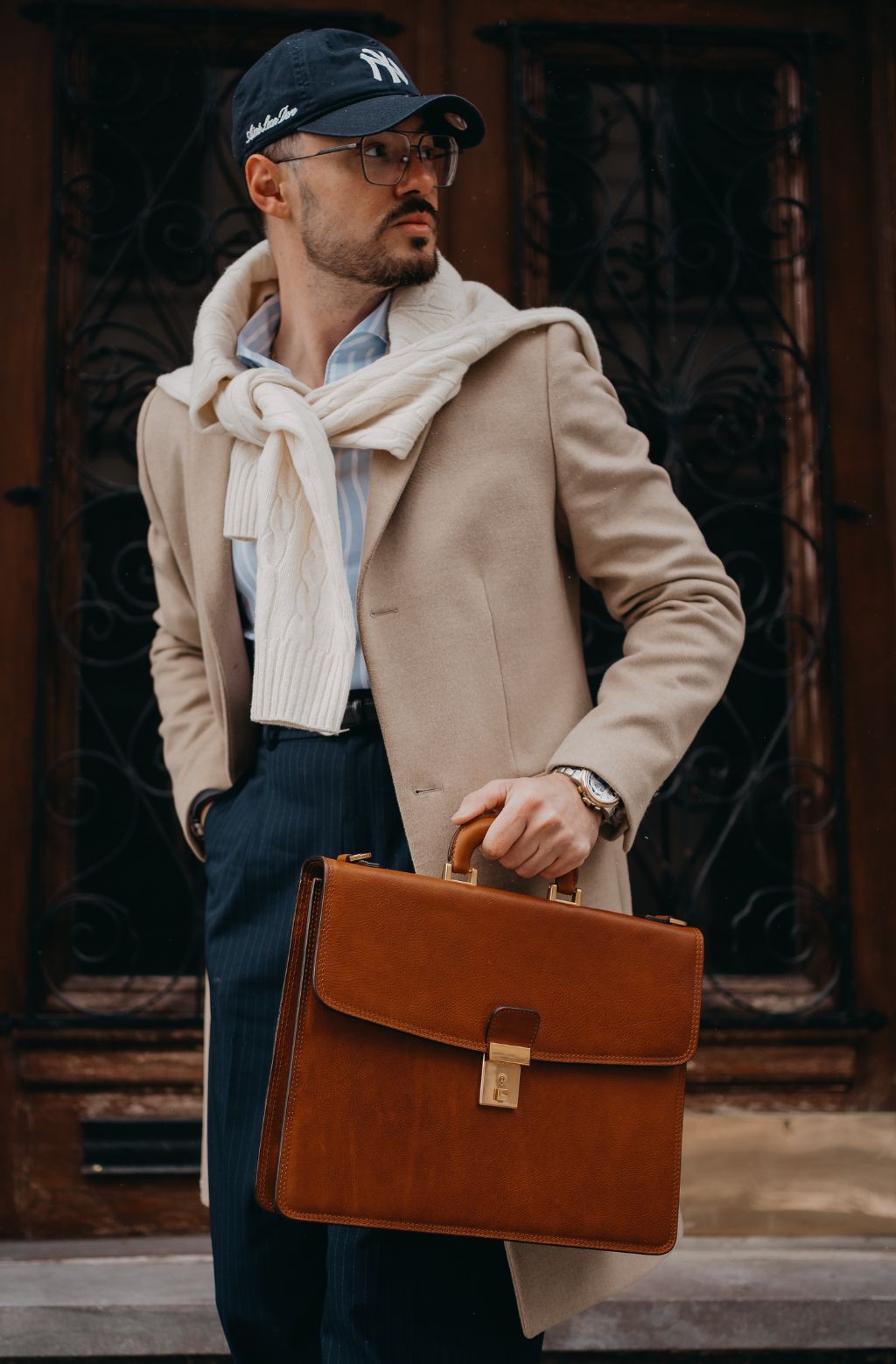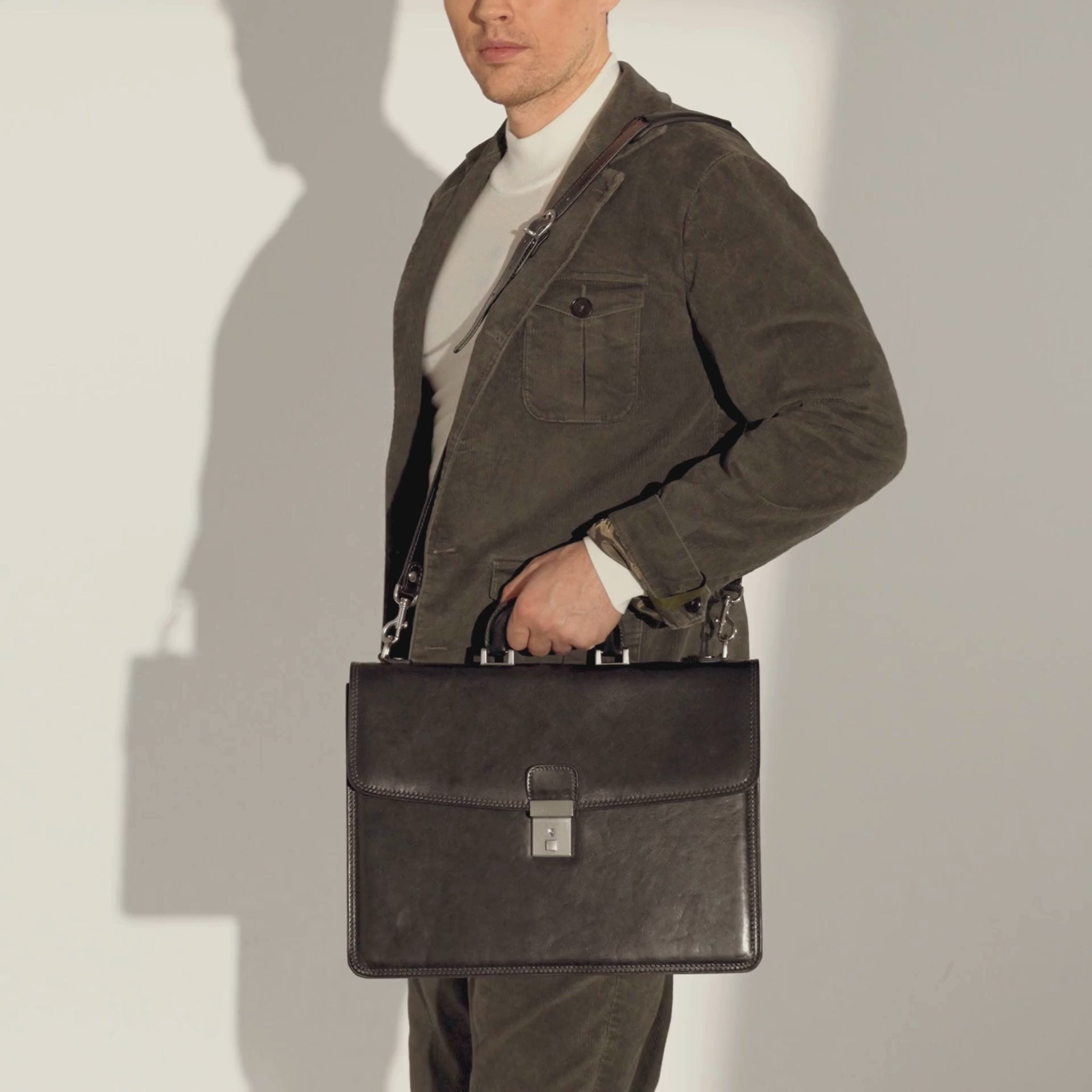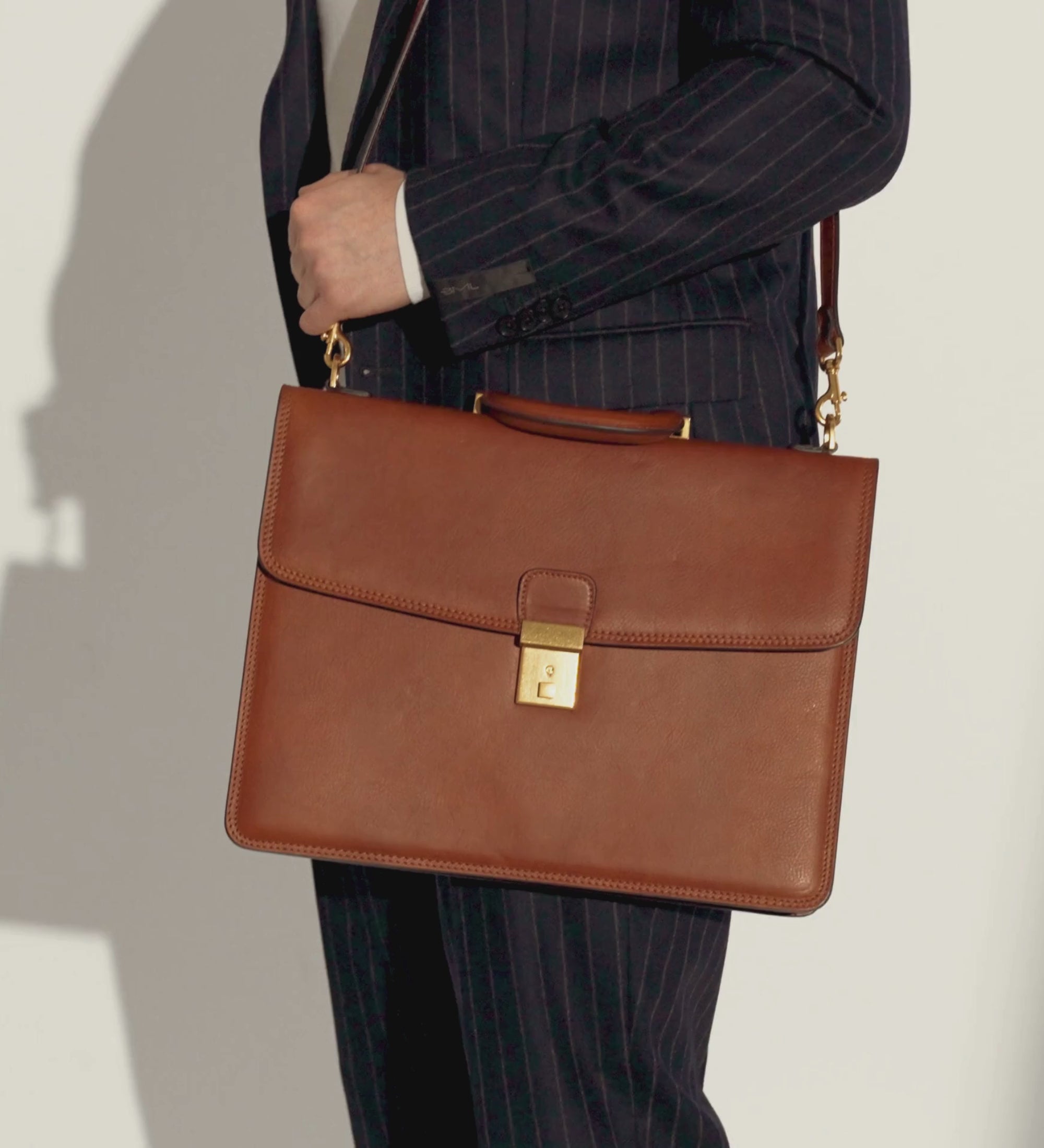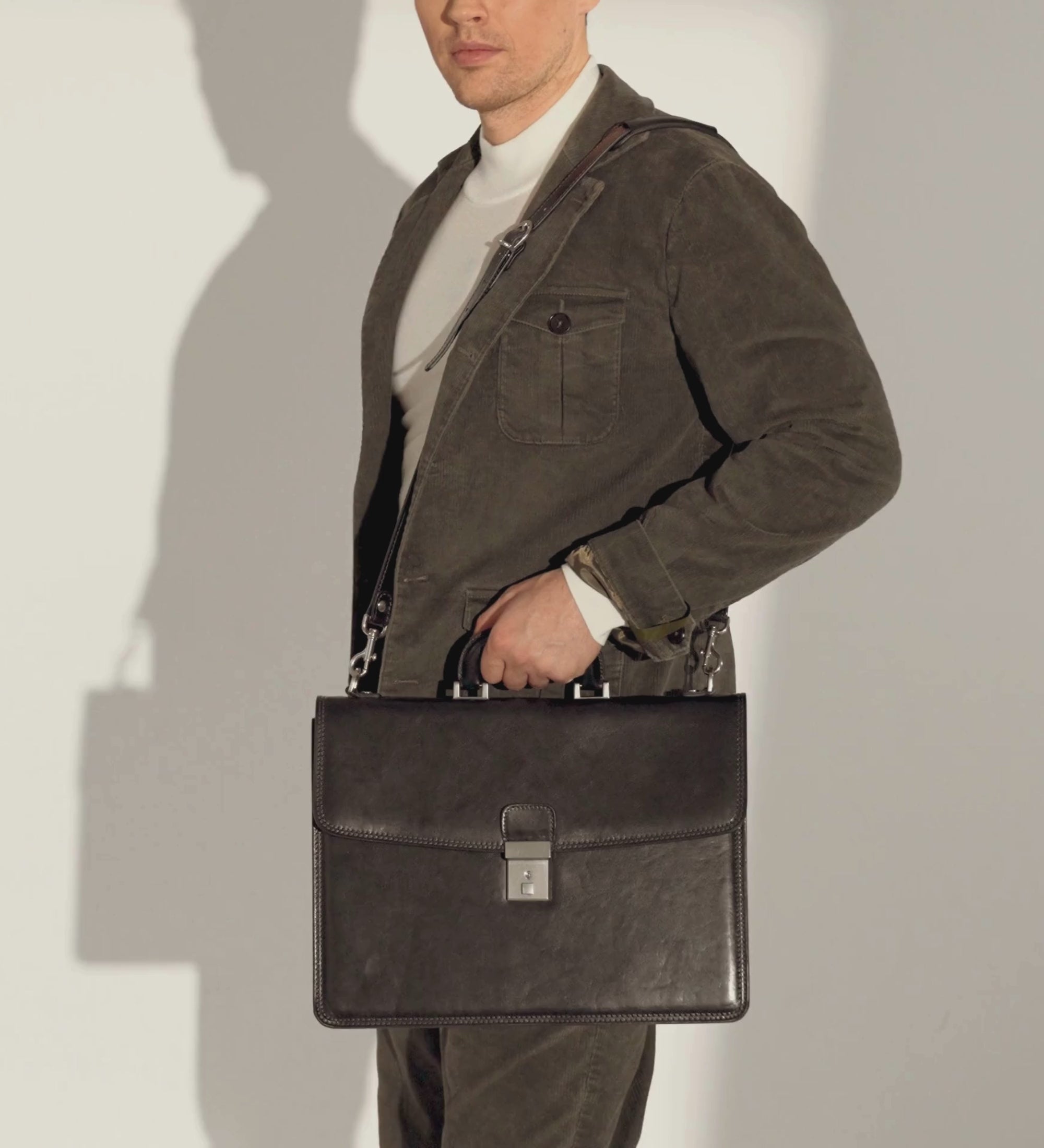 A leather briefcase that is classic but unassuming. For when you haven’t yet decided what kind of character you are going to play in life. It goes with everything, allowing you full freedom to be one person today and the complete opposite tomorrow: a suit or a beanie? Both? Does anyone do both? No? Should you be the first? Complemented by imagination.