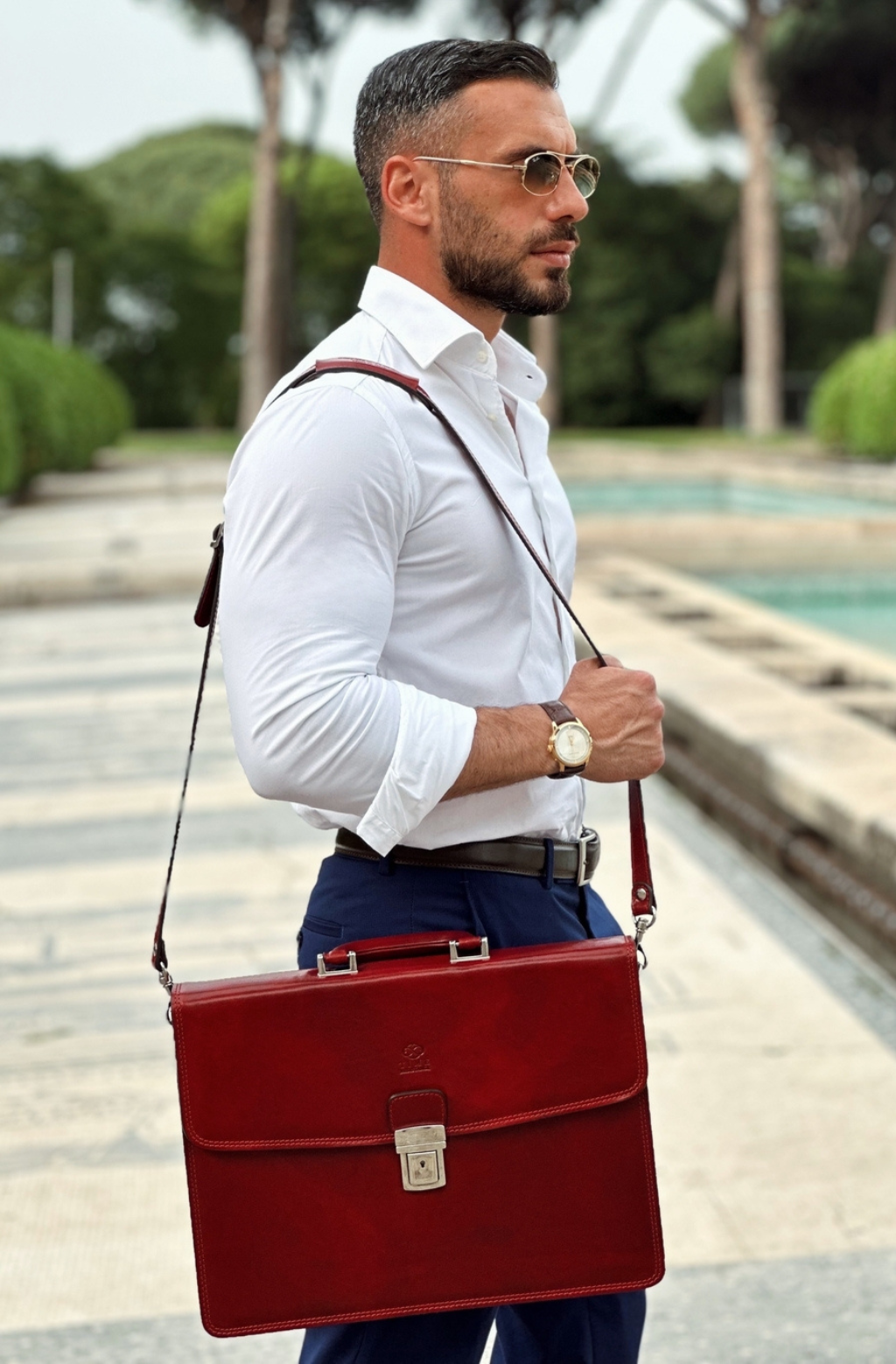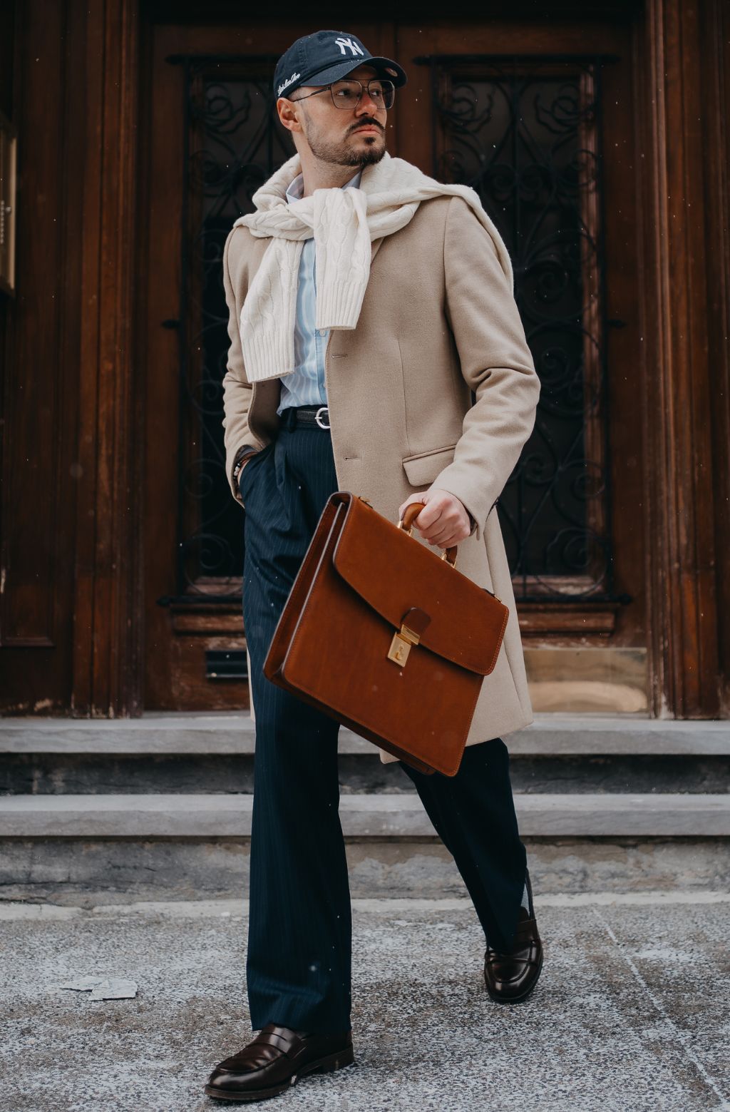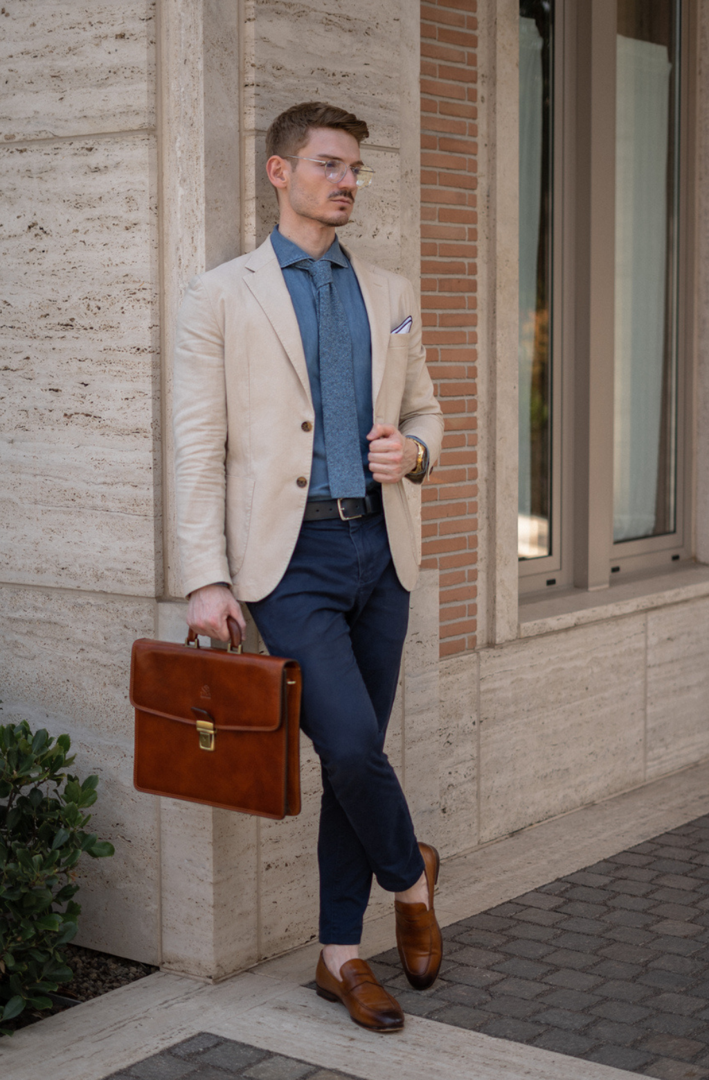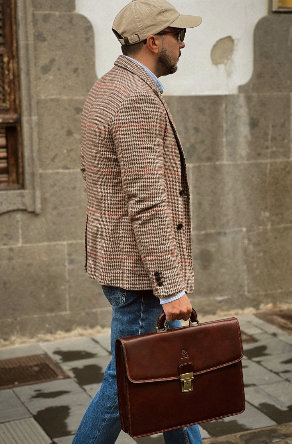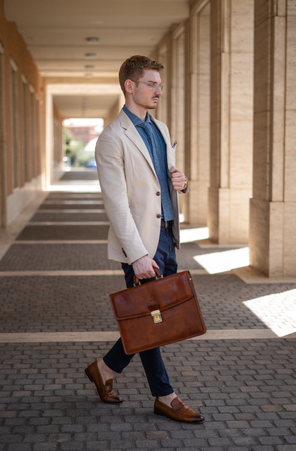 A leather briefcase that is classic but unassuming. For when you haven’t yet decided what kind of character you are going to play in life. It goes with everything, allowing you full freedom to be one person today and the complete opposite tomorrow: a suit or a beanie? Both? Does anyone do both? No? Should you be the first? Complemented by imagination.