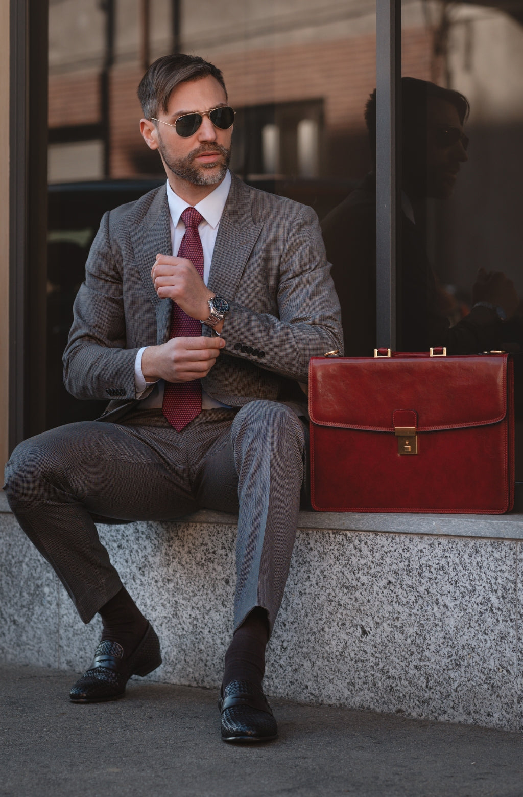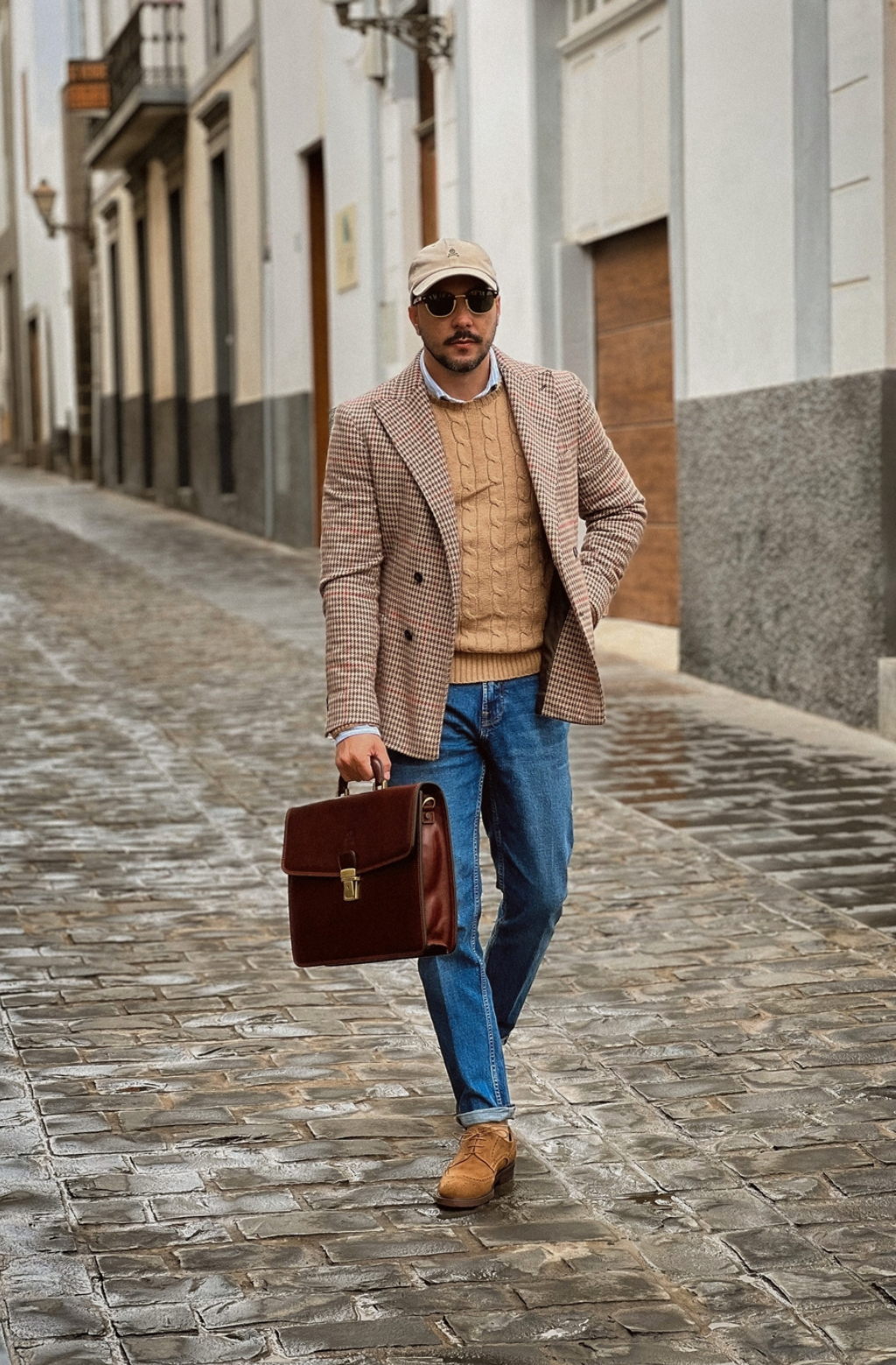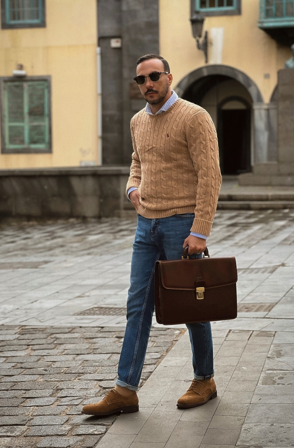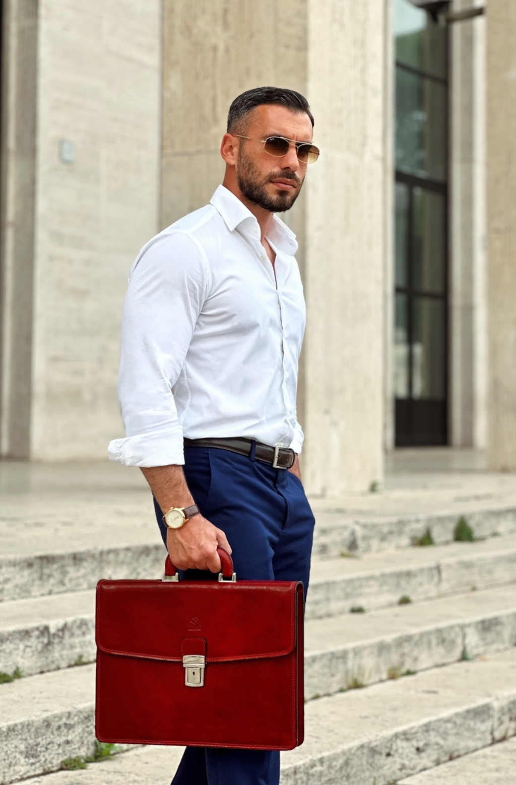 A leather briefcase that is classic but unassuming. For when you haven’t yet decided what kind of character you are going to play in life. It goes with everything, allowing you full freedom to be one person today and the complete opposite tomorrow: a suit or a beanie? Both? Does anyone do both? No? Should you be the first? Complemented by imagination.