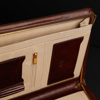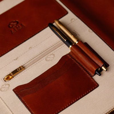 Hand dyeing is a slow, meticulous craft where every hide is colored by hand, layer by layer, using gentle circular motions. Instead of machines, it is the artisan’s touch that controls depth, warmth, and character. The dye is massaged into the grain, allowing the leather to breathe, absorb, and reveal its natural variations.