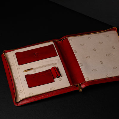 Time Resistance bags and accessories are crafted from premium full-grain, hand-dyed, vegetable-tanned Italian cowhide, known as Vachetta leather, which develops a beautiful patina and ages gracefully over time.