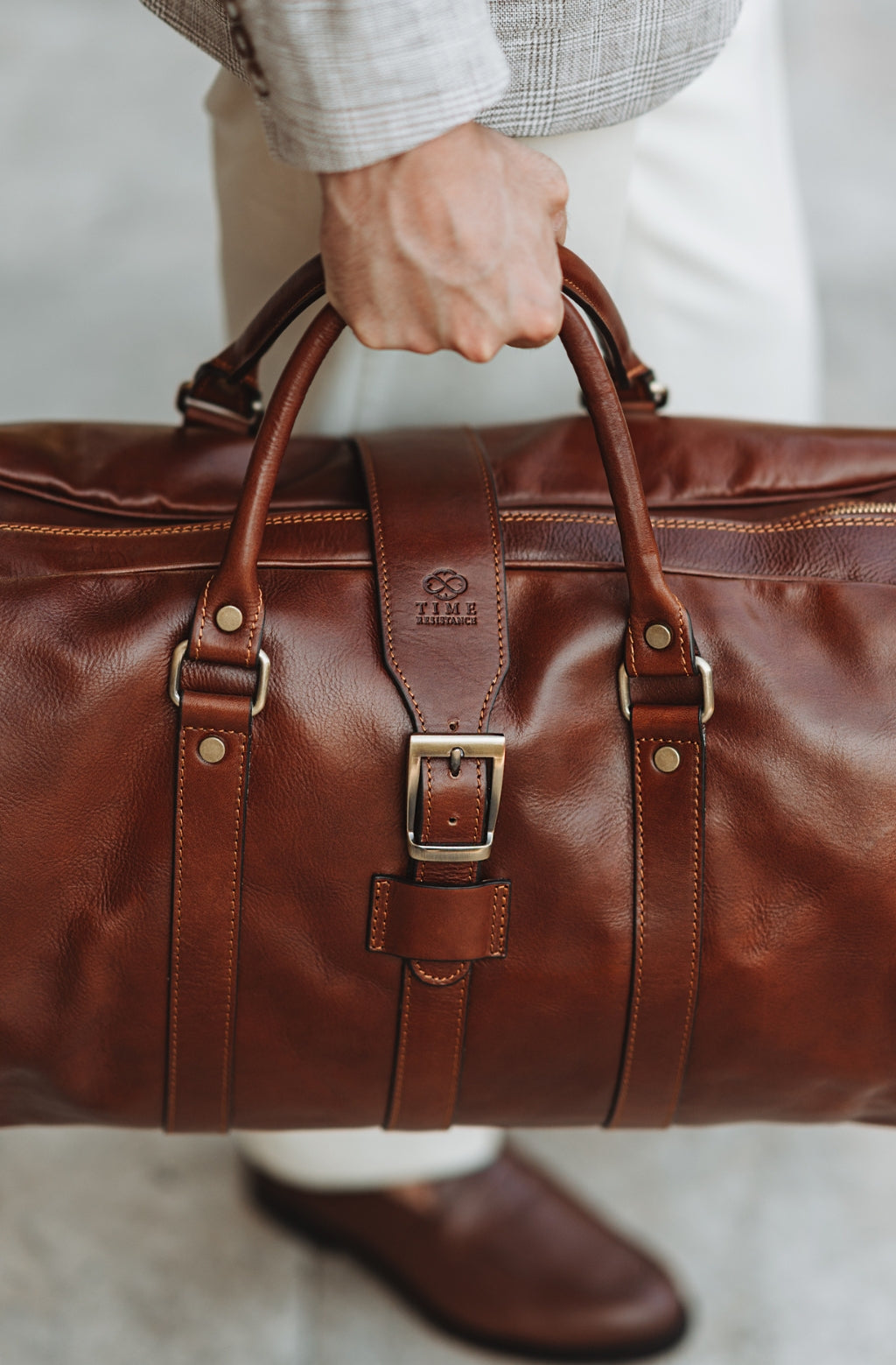 Time Resistance bags are crafted from premium full-grain, hand-dyed, vegetable-tanned Italian cowhide, known as Vachetta leather, which develops a beautiful patina.