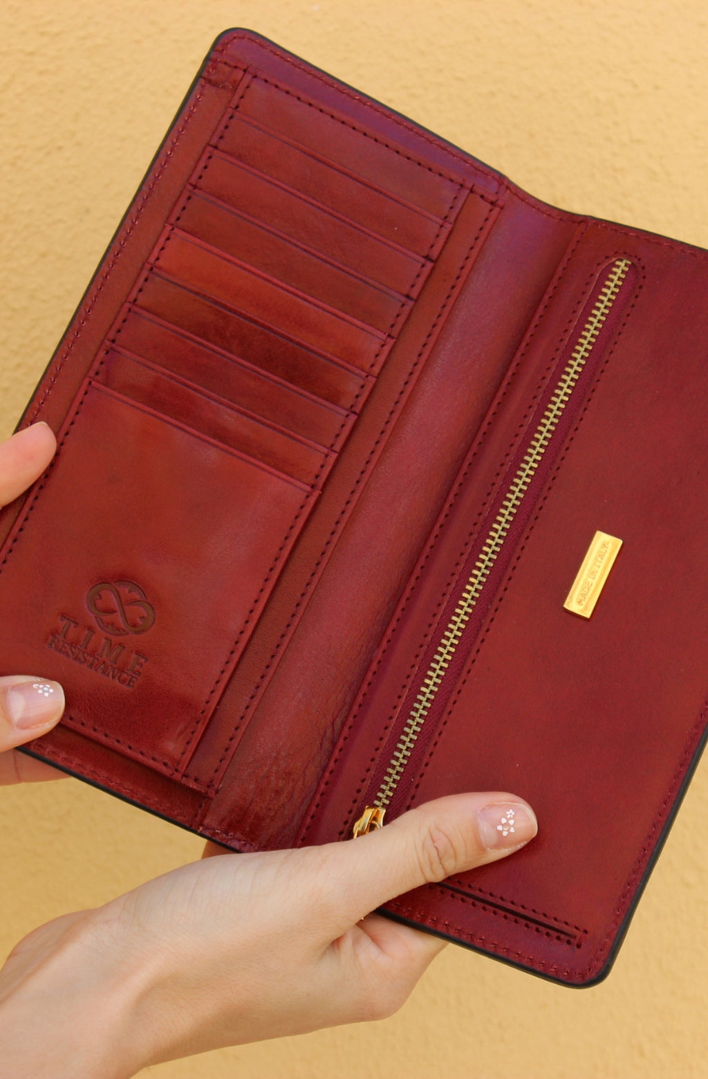 Time Resistance bags and accessories are crafted from premium full-grain, hand-dyed, vegetable-tanned Italian cowhide, known as Vachetta leather, which develops a beautiful patina and ages gracefully over time.