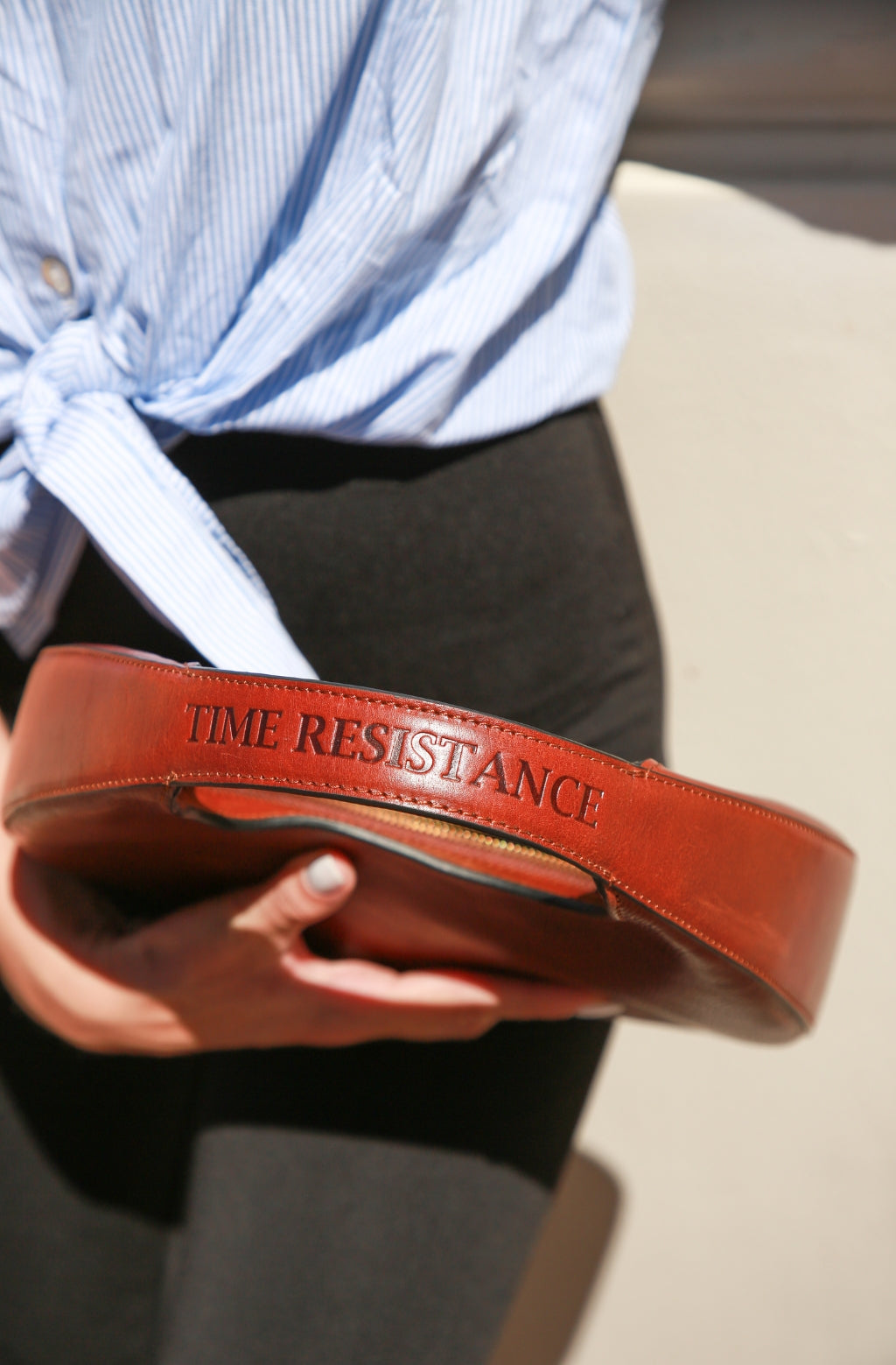 Time Resistance bags and accessories are crafted from premium full-grain, hand-dyed, vegetable-tanned Italian cowhide, known as Vachetta leather, which develops a beautiful patina and ages gracefully over time.