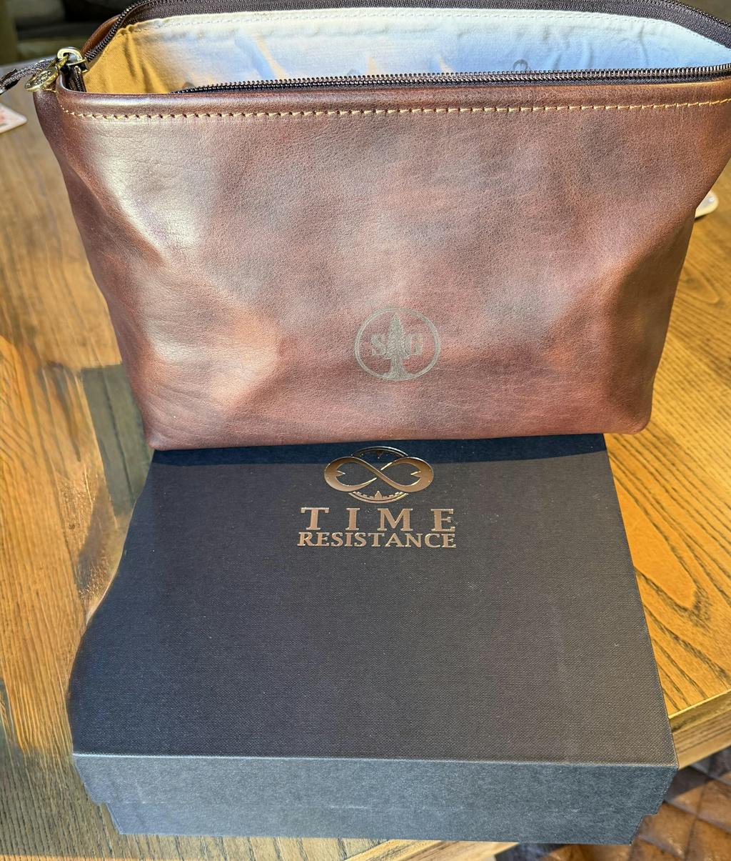 Time Resistance bags and accessories are crafted from premium full-grain, hand-dyed, vegetable-tanned Italian cowhide, known as Vachetta leather, which develops a beautiful patina and ages gracefully over time.