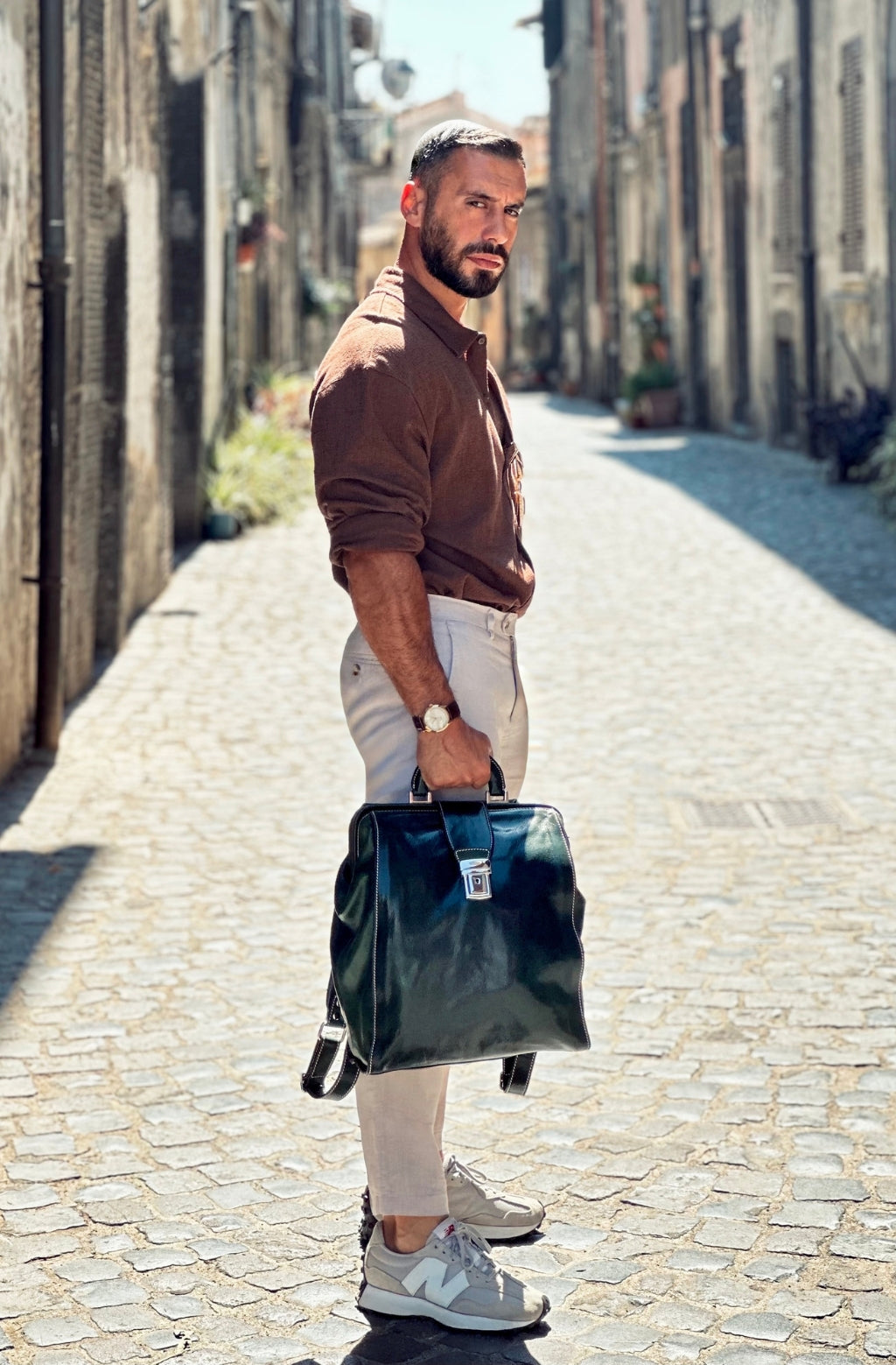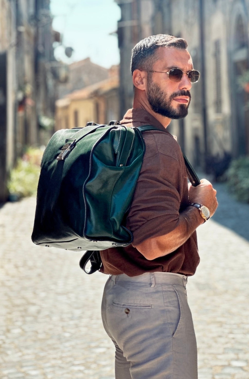 Time Resistance bags are crafted from premium full-grain, hand-dyed, vegetable-tanned Italian cowhide, known as Vachetta leather, which develops a beautiful patina.