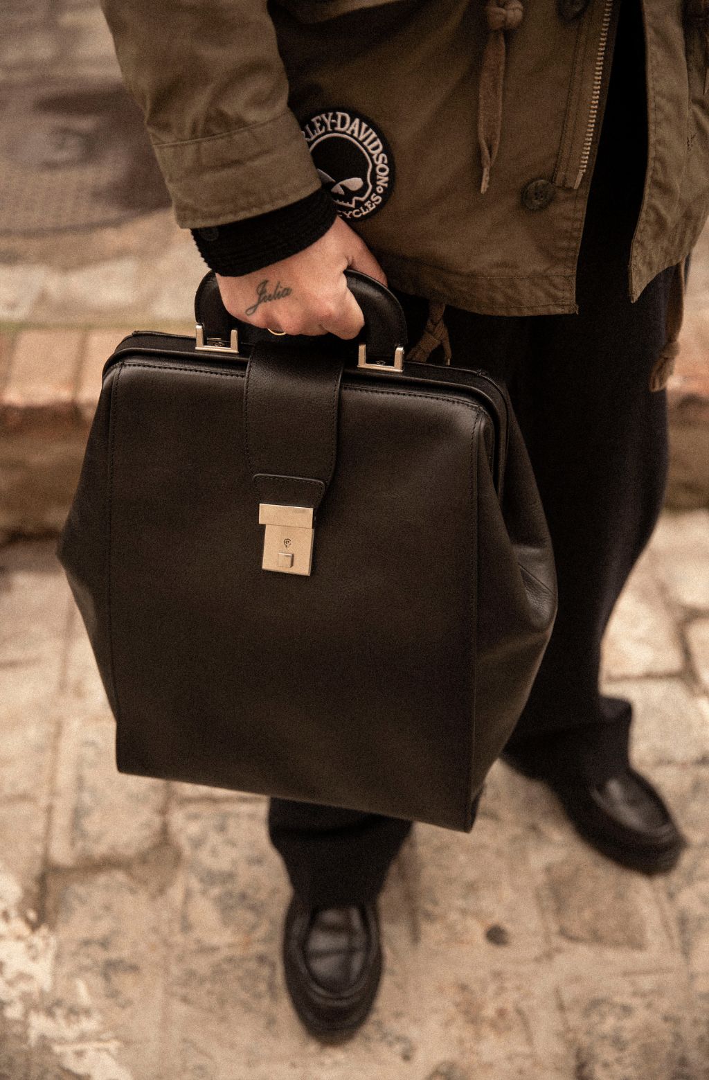 Time Resistance bags and accessories are crafted from premium full-grain, hand-dyed, vegetable-tanned Italian cowhide, known as Vachetta leather, which develops a beautiful patina and ages gracefully over time.