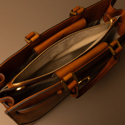 Time Resistance bags are crafted from premium full-grain, hand-dyed, vegetable-tanned Italian cowhide, known as Vachetta leather, which develops a beautiful patina.