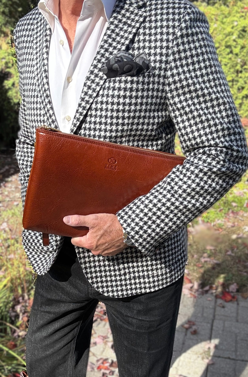 A manly Italian leather clutch purse. Minimalist design, perfect for those who like simplicity without renouncing elegance. It will accommodate all of your daily essentials including smartphone, small tablet, etc. and look all business with a touch of sartorial elegance.