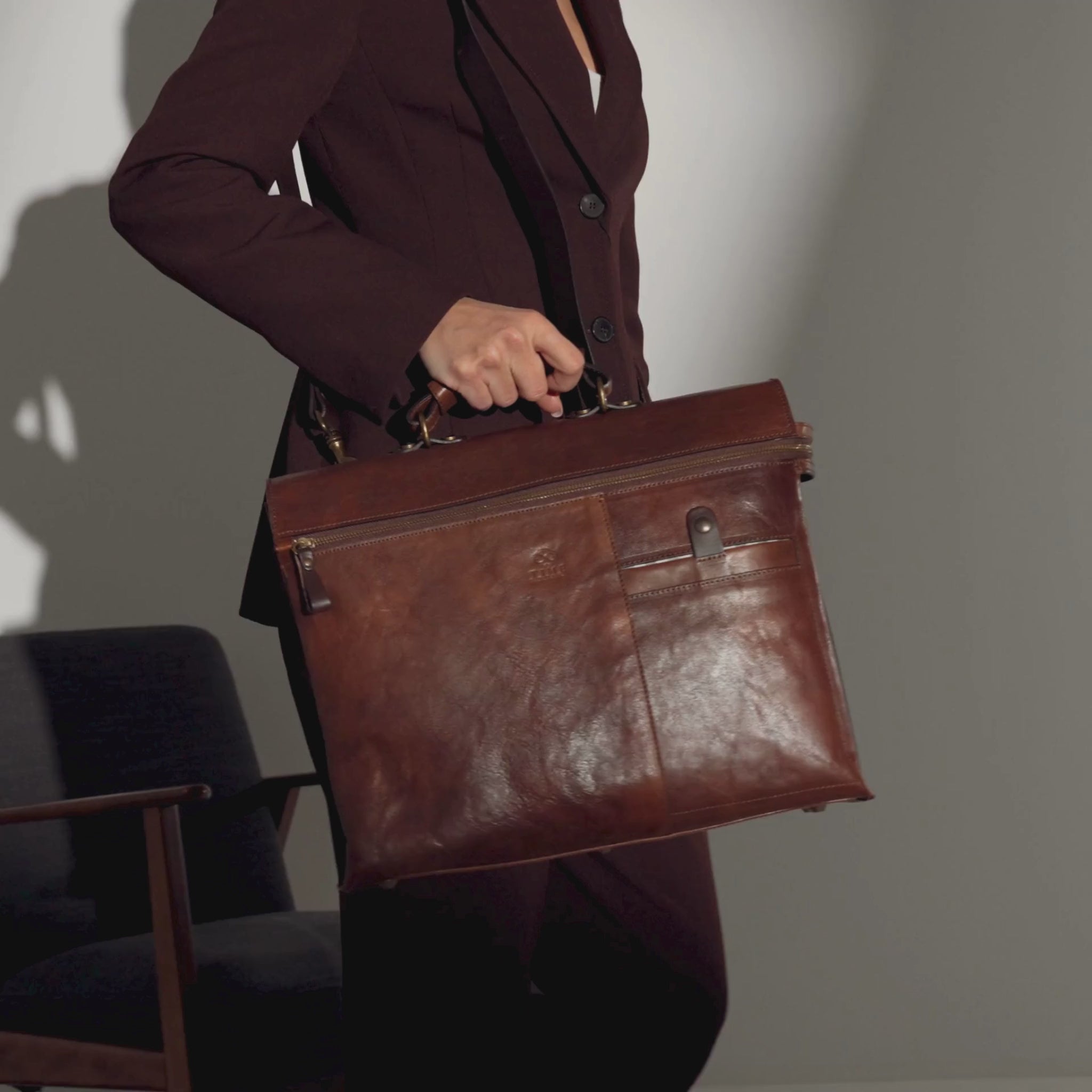 Brown Leather Briefcase Laptop Bag for Women - From Here to Eternity