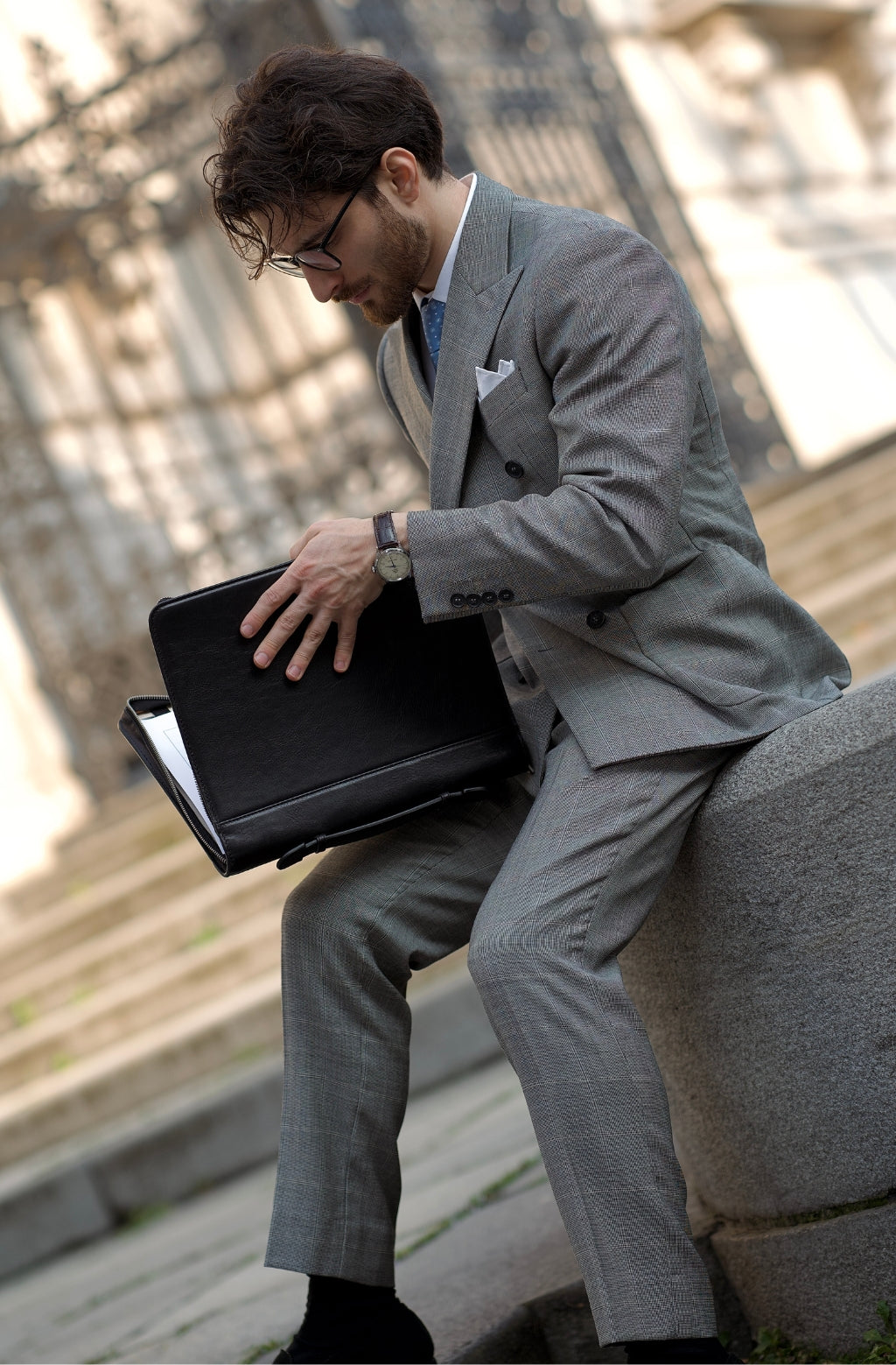 Introducing the "Joy in the Morning" Leather Portfolio, a beacon of professional ambition and confidence. Crafted with precision and finesse, this accessory embodies the essence of success with every stitch. Its sleek and minimalist design, accentuated by a refined handle, exudes a sense of purpose and determination, setting the stage for triumph. As you embrace its zip closure, anticipation swells, igniting the fire of ambition within. Open it to reveal a world of organization tailored to the needs of a driven individual. Each detail speaks to meticulous preparation and attention to detail, reflecting your unwavering commitment to excellence. Step boldly into the morning light with the "Joy in the Morning" Leather Portfolio, where professionalism meets aspiration in perfect harmony.