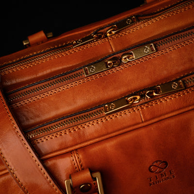 Time Resistance bags are crafted from premium full-grain, hand-dyed, vegetable-tanned Italian cowhide, known as Vachetta leather, which develops a beautiful patina.